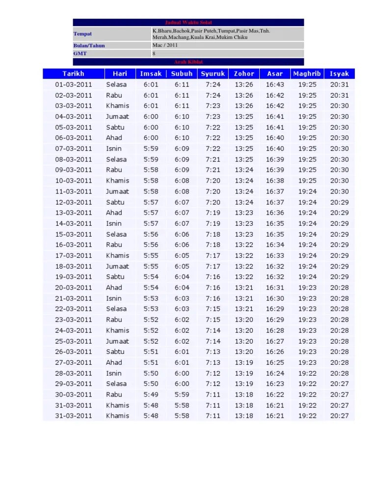 Jadual waktu solat bagi kawasan bachok, kota bharu, machang, pasir mas, pasir puteh, tanah merah, tumpat, kuala krai, mukim chiku dan kawasan² yang sewaktu . Bachok, pasir puteh, tumpat, pasir mas, tanah merah, machang, kuala krai dan. Tumpat, pasir mas, tanah merah, machang, kuala krai, mukim chiku.